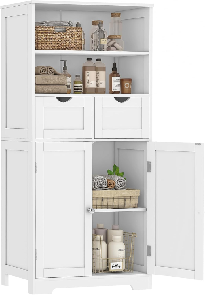 Tall Storage Cabinet, Bathroom Cabinet with 2 Drawers &3 Adjustable Shelves, Bathroom Storage Cabinet for Living Room, Dining Room, Entryway, White