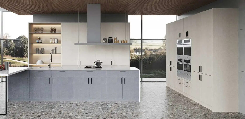 Beige Wood Grain Cabinets