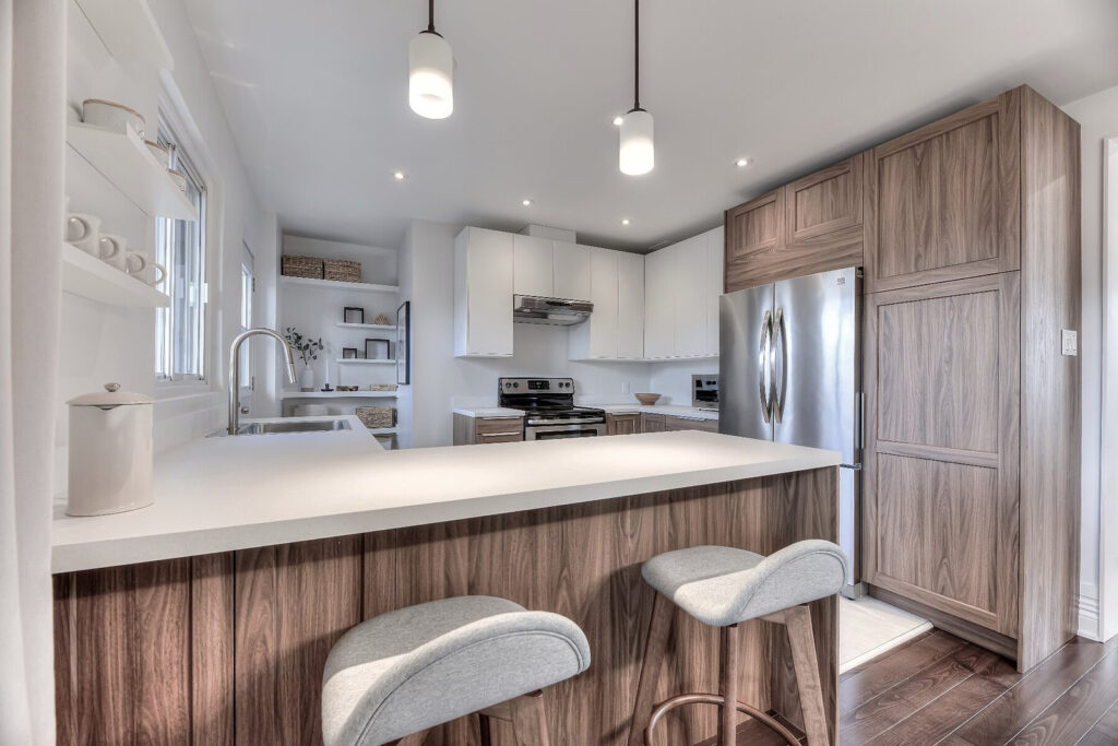 - Flat Surfaces: Modern cabinets typically have flat-panel doors and drawer fronts without ornate detailing or embellishments. The focus is on smooth, unbroken surfaces that contribute to a clean and streamlined look.